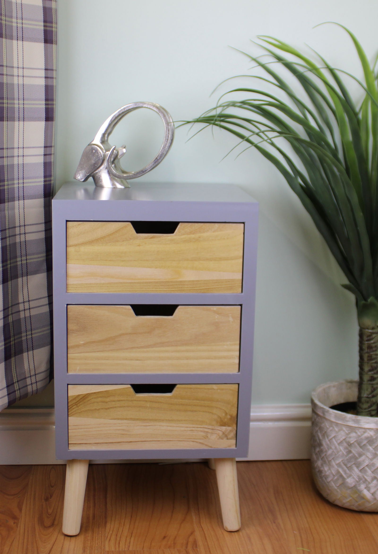 3 Drawer Chest In Grey Finish With Natural Drawers With Removable Legs
